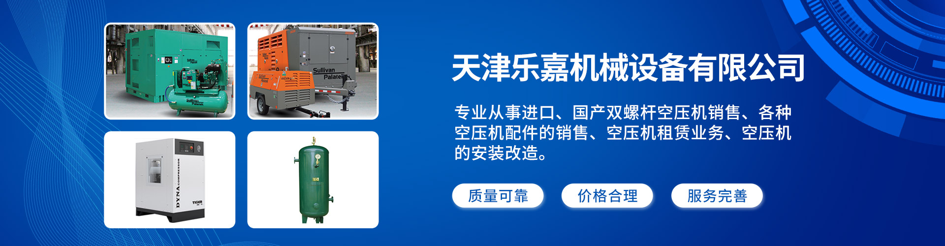 天津樂嘉機(jī)械設(shè)備有限公司,成立于2011年,公司專業(yè)從事進(jìn)口、國產(chǎn)雙螺桿空壓機(jī)銷售;各種空壓機(jī)配件的銷售;儲(chǔ)氣罐銷售:冷凍式干燥機(jī)銷售:車間管路設(shè)計(jì)與施工:空壓站的設(shè)計(jì)施工:并且配備專業(yè)技術(shù)人員進(jìn)行機(jī)器的維修、維護(hù)與保養(yǎng)等業(yè)務(wù);我公司還提供空壓機(jī)租賃業(yè)務(wù);空壓機(jī)的安裝改造業(yè)務(wù)等。